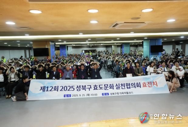 전국연합뉴스 김재업 기자 | 성북구 효도문화실천협의회가 10월 경로의 달을 앞두고 9월 25일 성북구청 다목적홀에서 ‘제12회 성북구 효도문화실천협의회 효잔치’를 열었다. 이날 행사에는 지역 독거어르신과 효행 표창자, 주민과 초청 인사 등 300여 명이 참석해 경로효친의 의미를 함께 나눴다.