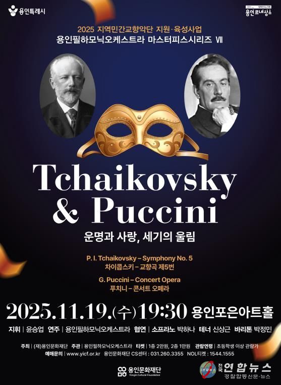전국연합뉴스 박남호 기자 | 용인문화재단은 오는 11월 19일 오후 7시 30분, 용인포은아트홀에서 용인필하모닉오케스트라(지휘 윤승업) ‘Tchaikovsky · Puccini '운명과 사랑, 세기의 울림'’ 공연을 개최한다고 밝혔다.