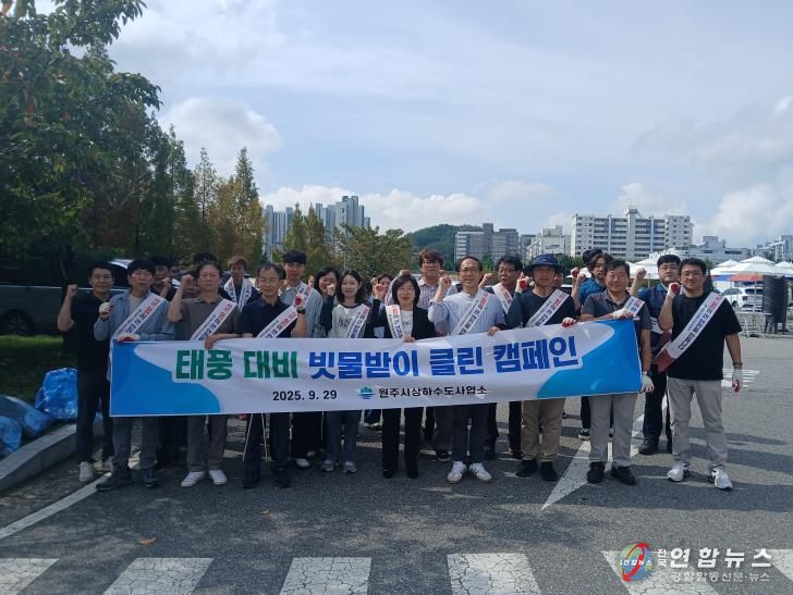 전국연합뉴스 유근택 기자 | 원주시상하수도사업소는 쾌적한 도시환경 조성과 건강한 수생태계 보전을 위해 지난 29일 소장을 비롯한 직원 60여 명과 함께 태풍 대비 ‘빗물받이 클린’ 캠페인을 전개하고, 환경부에 하수 중점관리지역 지정을 신청했다.