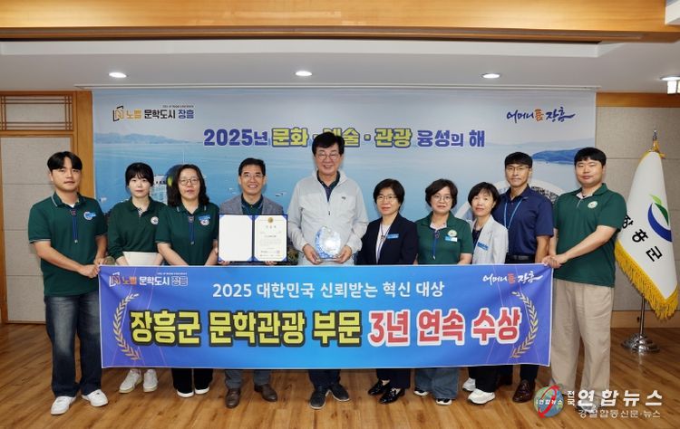 전국연합뉴스 김철환 기자 | 장흥군이 9월 29일 개최한 ‘2025 대한민국 신뢰받는 혁신대상’시상식에서 문학관광 부문 공공혁신 대상을 수상했다고 밝혔다.