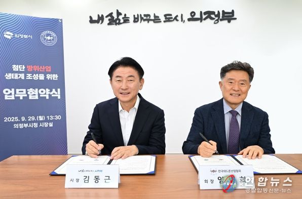 전국연합뉴스 박점규 기자 | 의정부시는 9월 29일 (사)한국대드론산업협회와 ‘첨단 방위산업 생태계 조성을 위한 업무협약’을 체결했다.