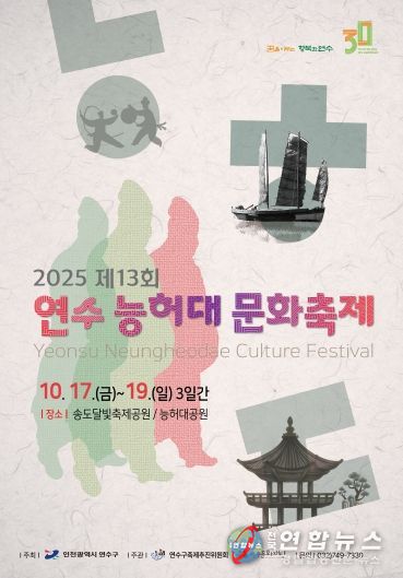 전국연합뉴스 기자 | 인천의 대표 문화축제로 자리매김한 ‘연수 능허대 문화축제’가 오는 17일부터 19일까지 3일간 송도달빛축제공원과 능허대공원 일원에서 그 화려한 막을 연다.