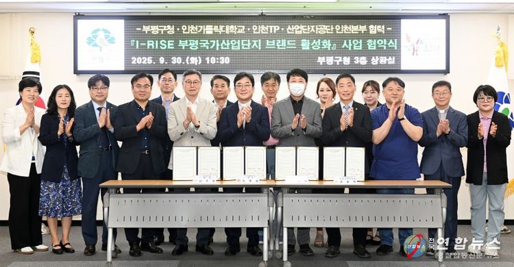 전국연합뉴스 박말출 기자 | 부평구는 지난 30일 구청 상황실에서 인천가톨릭대학교 ·인천테크노파크·한국산업단지공단과 함께 ‘I-RISE 부평국가산업단지 브랜드 활성화 사업’ 협약을 체결했다.
