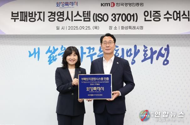 전국연합뉴스 이명후 기자 | 화성특례시가 국제표준화기구(ISO)에서 제정한 부패방지경영시스템 (ISO37001) 인증을 획득했다.