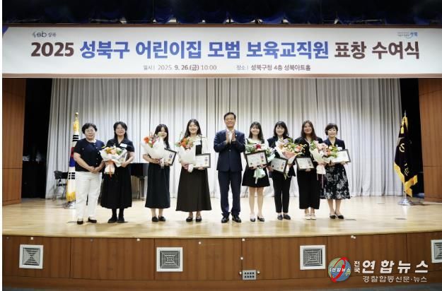 전국연합뉴스 김태연 기자 | 서울 성북구가 지난 26일 관내 어린이집에서 장기간 근무하며 보육서비스 향상과 우수 보육프로그램 개발, 보육환경 개선에 기여한 모범 보육교직원에게 표창을 수여했다. 올해 수상자는 원장, 보육교사, 조리사 등 총 77명으로, 각자의 자리에서 아이들의 안전과 건강, 교육의 질 향상에 힘써온 공로를 인정받았다.