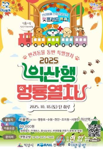 전국연합뉴스 최성용 기자 | 익산시가 반려동물과 함께 자연과 축제를 즐길 수 있는 열차 여행을 선보인다.
