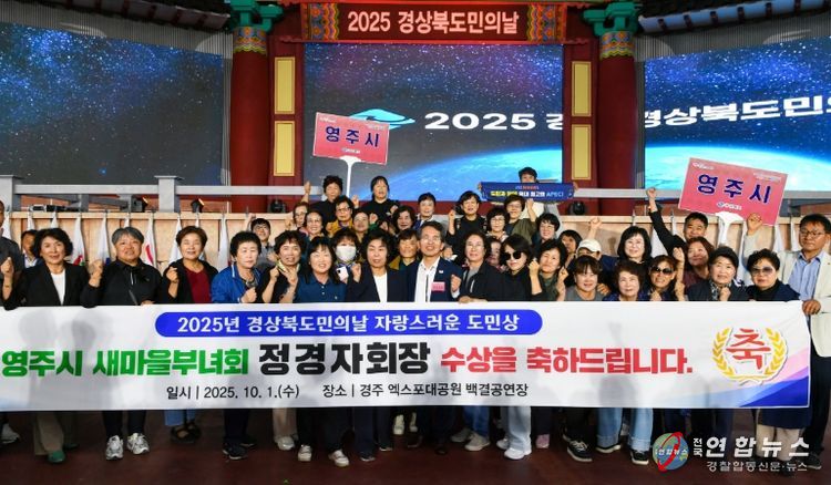 전국연합뉴스 김삿갓 기자 | 영주시는 10월 1일 경주 엑스포대공원 백결공연장에서 열린 ‘2025년 도민의 날 기념식’에서 정경자 영주시 새마을부녀회장이 ‘영주시 자랑스러운 도민상’을 수상했다고 밝혔다.