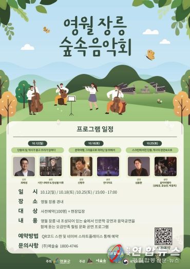 전국연합뉴스 기자 | 영월군은 오는 10월 12일, 18일, 25일 오후 3시부터 5시까지 세계유산 장릉 경내에서 ‘영월 장릉 숲속 음악회’를 개최한다.