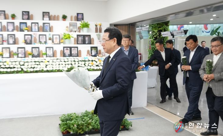 전국연합뉴스 김철환 기자 | 김영록 전라남도지사는 추석을 앞둔 3일 제주항공 여객기 사고 희생자 무안공항 합동분향소를 찾아 헌화·분향하며 희생된 분들의 넋을 기렸다.