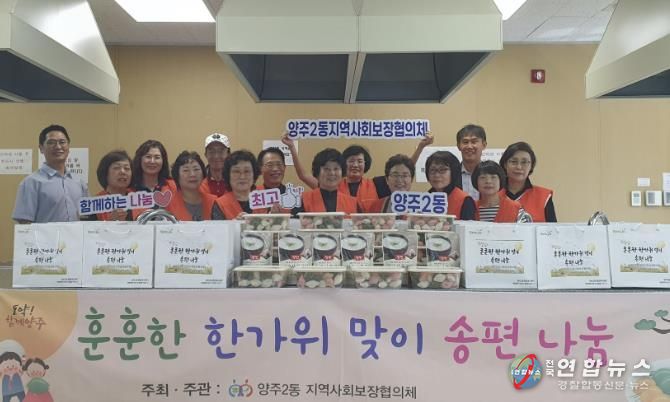 전국연합뉴스 박점규 기자 | 양주시 양주2동 지역사회보장협의체가 최근 추석을 맞아 관내 취약계층 100가구를 대상으로 송편을 전달했다.