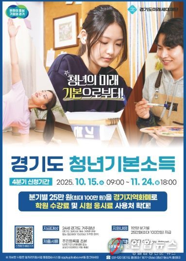 전국연합뉴스 조민준 기자 | 광명시는 오는 10월 15일 오전 9시부터 11월 24일 오후 6시까지 2025년 4분기 청년기본소득 신청을 받는다.