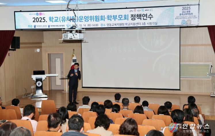 전국연합뉴스 기자 | 충청북도영동교육지원청은 14일 영동교육지원청 학교지원센터 3층 시청각실에서 관내 유·초·중·고등학교 운영위원, 학부모회 임원, 학교(원)장, 행정실장 120여 명을 대상으로 2025. 학교(유치원)운영위원회·학부모회 정책연수를 실시했다.