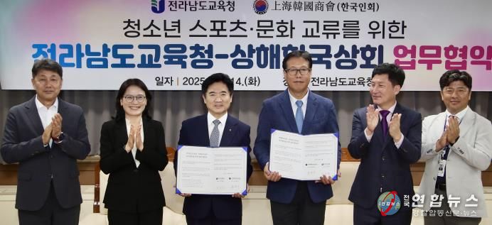 전국연합뉴스 기자 | 전라남도교육청은 14일 상해한국상회와 ‘청소년 스포츠·문화 교류를 위한 업무협약(MOU)’을 체결했다.