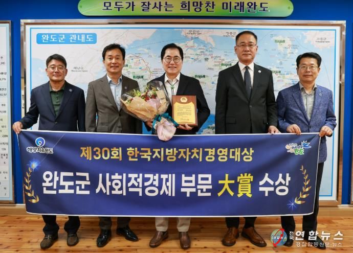 전국연합뉴스 김철환 기자 | 완도군은 14일 서울 공군호텔에서 열린 '제30회 한국지방자치경영대상' 시상식에서 사회적 경제의 저변을 확대하고 주민 참여형 순환 경제 모델을 정착시킨 공로를 인정받아 ‘대상’을 수상했다.