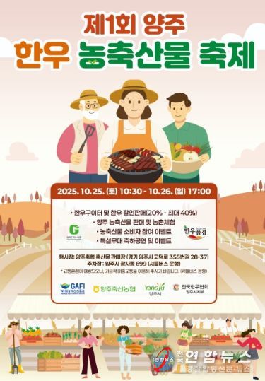 전국연합뉴스 박점규 기자 | 양주시가 양주축산농협과 공동으로 주최하고, 경기도농수산진흥원 공모사업 지원으로 추진되는 '제1회 양주 한우 농축산물 축제'를 오는 10월 25일부터 26일까지 이틀간 개최한다.