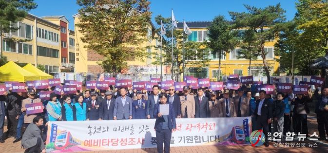 전국연합뉴스 신승국 기자 | 홍천군 재향군인회(회장 최해철)는 10월 15일 ‘재향군인의 날 기념행사’를 마친 후, 홍천읍 꽃뫼공원에서 용문~홍천 광역철도 예비타당성조사 통과를 촉구하는 성명서를 발표하고 홍천 시내 중심지 약 1km 구간을 가두행진했다.
