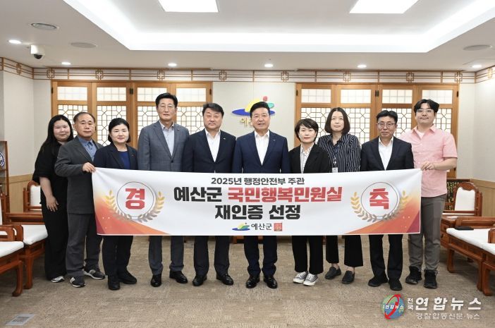전국연합뉴스 김용태 기자 | 예산군은 행정안전부가 주관하는 ‘2025년 국민행복민원실’ 평가를 통과해 재인증 기관으로 선정됐다고 17일 밝혔다.