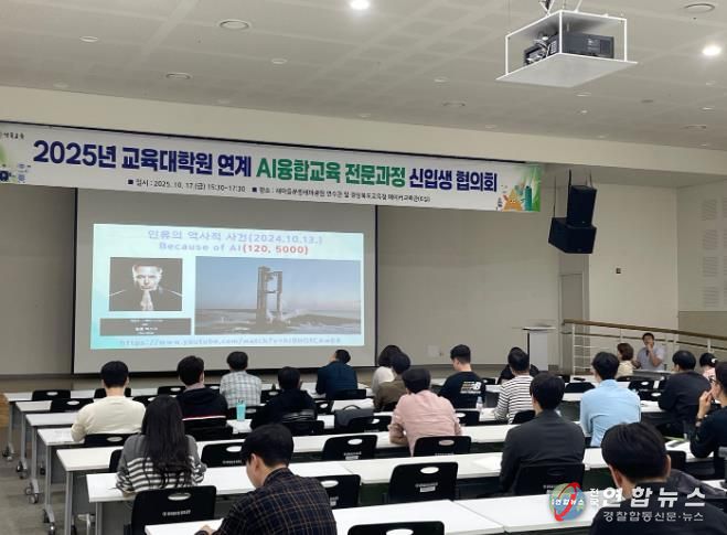 전국연합뉴스 기자 | 경북교육청은 17일 구미시에 있는 새마을운동테마공원 연수관에서 AI융합교육 전문과정 신입생 45명을 비롯해 졸업생과 관계자 등 60여 명이 참석한 가운데 ‘2025년 교육대학원 연계 AI융합교육 전문과정 신입생 협의회’를 개최했다고 밝혔다.