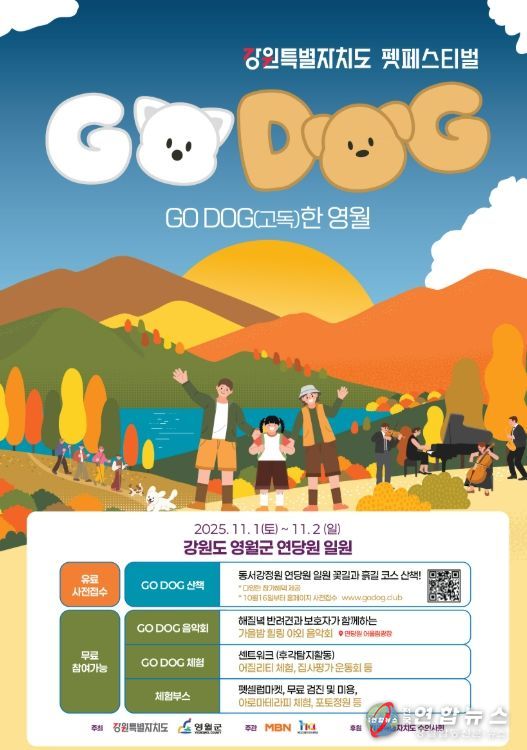 전국연합뉴스 기자 | 강원특별자치도와 영월군이 주최하고 MBN과 HA인터렉션이 주관하는 ‘고독(GO DOG)한 영월’ 펫 페스티벌이 11월 1일부터 11월 2일까지 동서강정원 연당원에서 열린다.
