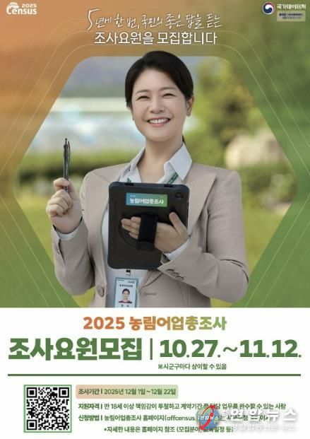 시 관계자는 “농림어업총조사는 향후 국가와 지자체 정책 수립의 기초자료로 활용되는 중요한 조사”라며 “관심 있는 시민들의 적극적인 지원과 참여를 부탁드린다”고 말했다.