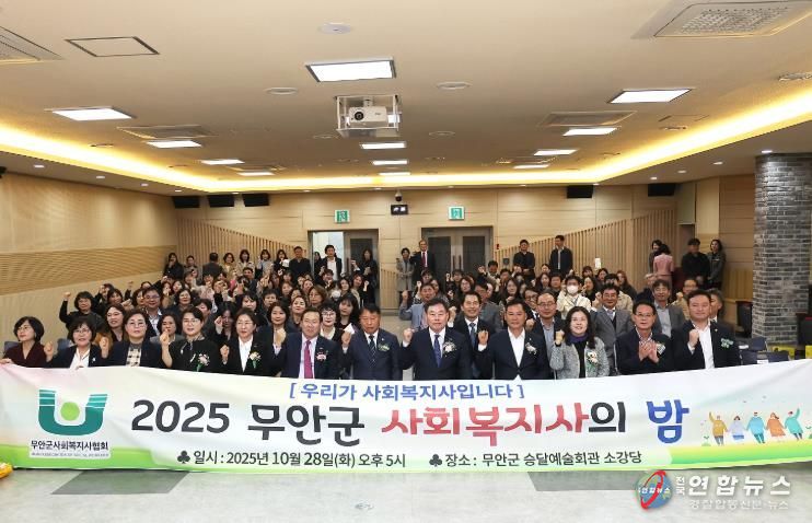 전국연합뉴스 김철환 기자 | 무안군 사회복지사협회는 지난 28일 무안군 승달문화예술회관에서 ‘2025년 무안군 사회복지사의 밤’ 행사를 성황리에 개최했다.
