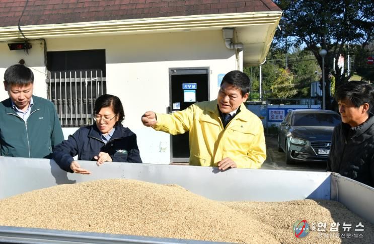 전국연합뉴스 김철환 기자 | 정철원 담양군수가 28일 봉산면 담양통합미곡종합처리장(RPC)를 찾아 공공비축미(산물벼) 수매 현장을 점검하고, 출하 농가와 농협 관계자들을 격려했다.