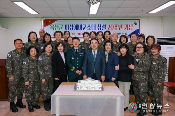 전국연합뉴스 이동수 기자 | 옥천군 여성예비군소대는 창설 20주년을 맞이하여 30일 옥천군청 대회의실에서 ‘창설 20주년 기념행사’를 개최했다. 이번 행사는 지난 20년간 지역 안보와 봉사활동에 헌신해 온 여성예비군의 발자취를 되돌아보고, 새로운 도약을 다짐하는 뜻깊은 자리로 마련됐다.