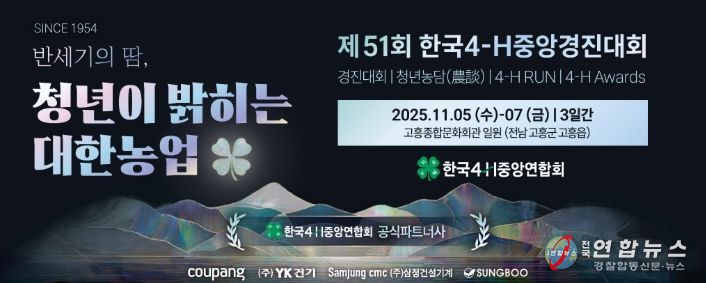 전국연합뉴스 김철환 기자 | 고흥군은 오는 11월 5일부터 7일까지 3일간, 고흥문화회관 일원에서 ‘제51회 한국4-H중앙경진대회’를 개최한다고 밝혔다.
