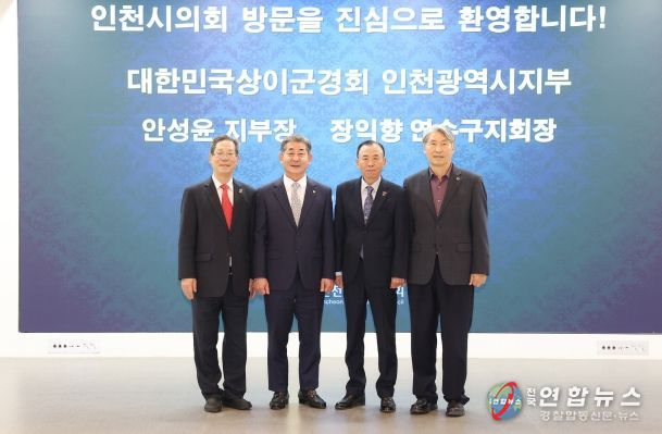 전국연합뉴스 박충곤 기자 | 인천광역시의회 정해권 의장(국·연수구1)은 11일 시의회를 방문한 대한민국상이군경회 안성윤 인천시지부장과 장익향 연수구지회장을 접견하고 환담을 나눴다.