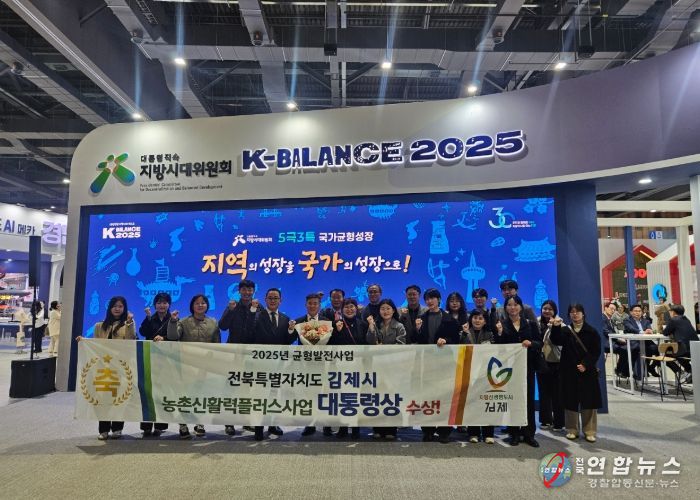 전국연합뉴스 김현호 기자 | 김제시가 농촌 지역의 자립적 발전과 청년 주도형 혁신 거버넌스 구축을 통해 농촌 활성화에 기여한 공로를 인정받아 2025년 대통령 표창을 수상했다.