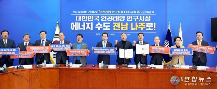 전국연합뉴스 김철환 기자 | 전라남도는 19일 국회에서 지역 현안 해결과 인공태양 연구시설 유치를 위해 ‘전남 국회의원-전남도 정책협의회’를 개최하고, 이어 광주 국회의원들과도 공동결의문을 발표하며 한목소리로 유치 결의를 다졌다고 밝혔다.