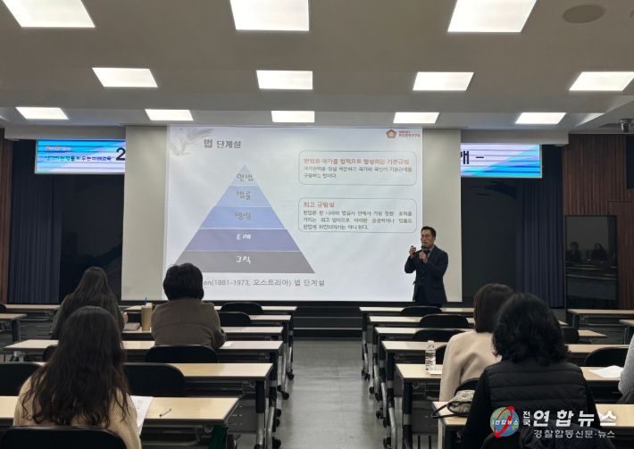전국연합뉴스 기자 | 제주특별자치도교육청은 18일 교육청 대회의실에서 교원 40여 명이 참여한 가운데 ‘2025 교원 대상 헌법교육 특강’을 실시했다.