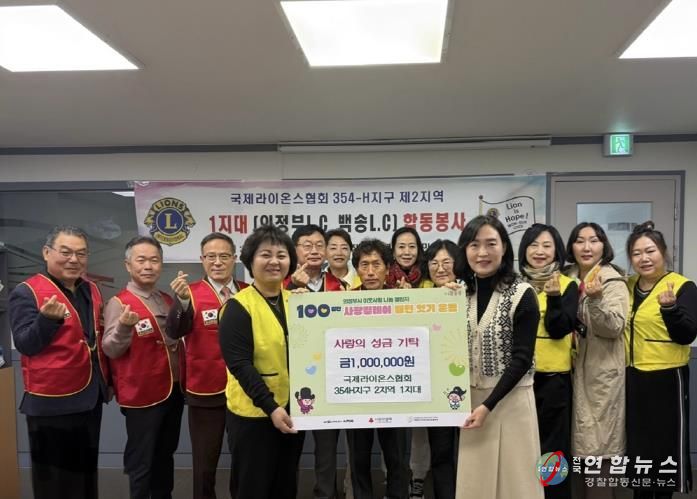 전국연합뉴스 박점규 기자 | 의정부시 신곡2동주민센터는 11월 18일 국제라이온스협회 354-H 2지역 1지대가 성금 100만 원을 기탁하며 ‘100일간 사랑릴레이 배턴 잇기’에 동참했다고 밝혔다.