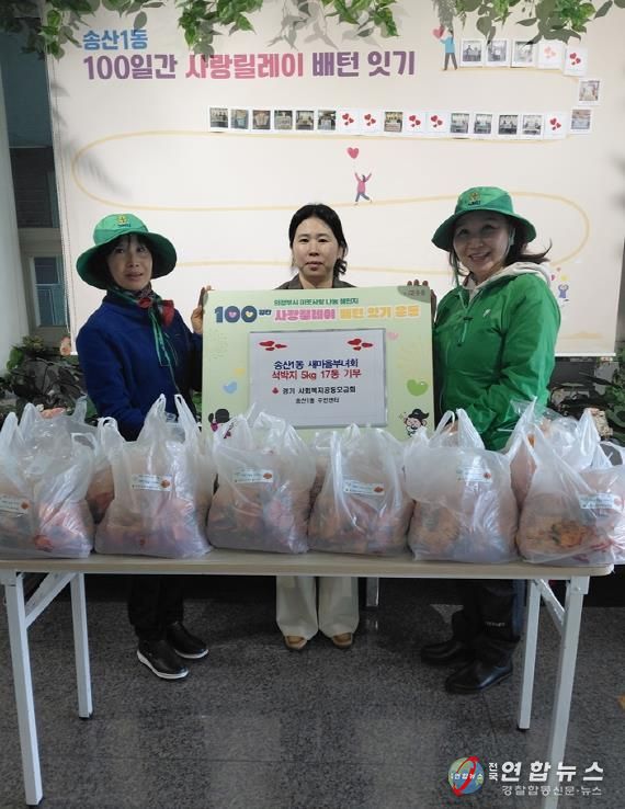 전국연합뉴스 박점규 기자 | 의정부시 송산1동주민센터는 11월 21일 송산1동 새마을부녀회가 정성껏 만든 석박지 17통을 관내 독거노인에게 전달했다고 밝혔다.
