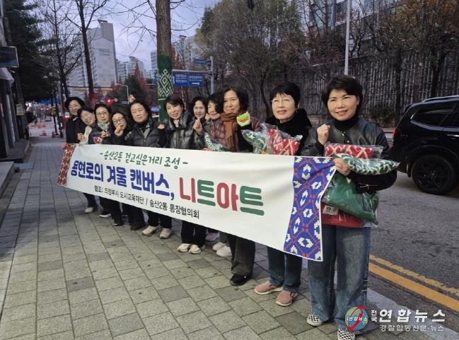 전국연합뉴스 박점규 기자 | 의정부시 송산2동주민센터는 11월 21일 용현로(민락동 719번지 일원)에서 진행한 ‘그래피티니팅(Graffiti Knitting)’ 기반의 ‘용현로의 겨울 캔버스, 니트아트’ 사업을 성공적으로 마무리했다고 밝혔다.