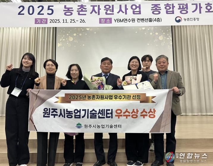 전국연합뉴스 유근택 기자 | 원주시농업기술센터는 지난 25일 열린 농촌진흥청 주관 ‘2025년 농촌자원사업 성과확산 경진대회’에서 우수상을 수상했다.