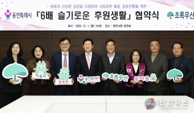 전국연합뉴스 박남호 기자 | 용인특례시는 1일 오후 시청 본관 4층 접견실에서 초록우산 어린이재단과 디딤씨앗통장 활성화를 위한 업무 협약을 맺었다고 2일 밝혔다.