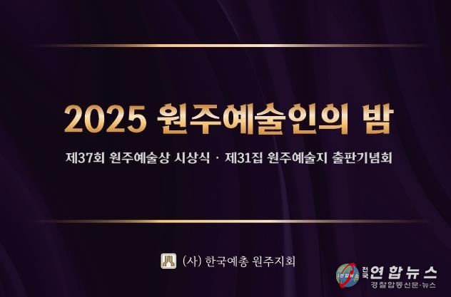 전국연합뉴스 유근택 기자 | 지역 문화예술 발전에 기여한 예술인들의 공로를 기리고, 원주의 예술적 성과를 공유하기 위한 ‘제37회 원주예술상 시상식 및 제31집 원주예술지 출판기념회’가 오는 16일 오후 5시, 빌라드아모르에서 개최된다.