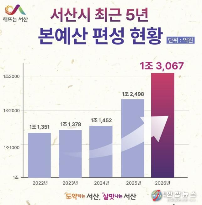 전국연합뉴스 김용태 기자 | 충남 서산시가 본예산 1조 3천억 원 시대를 맞이하며 경제회복과 미래 준비에 총력을 기울인다.