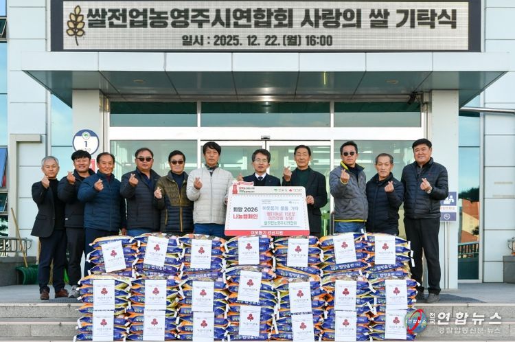 전국연합뉴스 김삿갓 기자 | (사)한국쌀전업농 영주시연합회(회장 송희찬)는 지난 22일 영주시청 전정에서 지역 취약계층을 위한 사랑의 쌀 1,500kg(10kg 150포, 500만 원 상당)을 기탁하며 연말 나눔의 온기를 더했다.