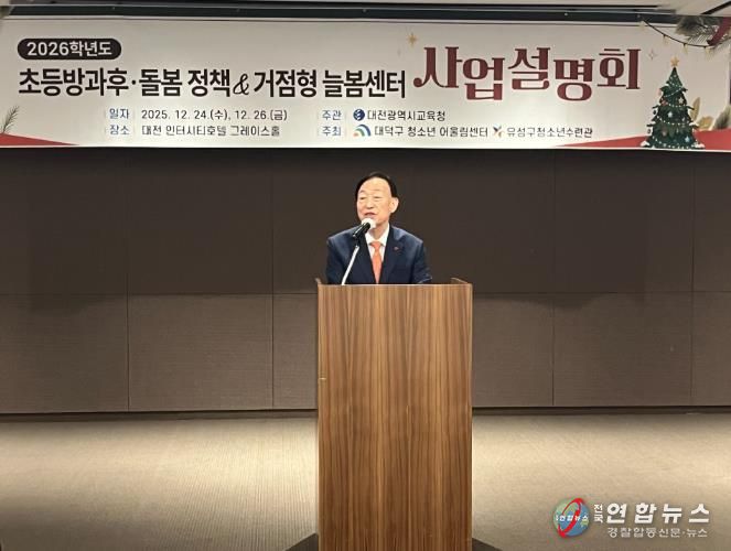 전국연합뉴스 기자 | 대전시교육청은 12월 24일과 26일 양일간에 걸쳐 호텔 인터시티에서 대전 내 전체 초등학교장을 대상으로‘2026학년도 초등방과후·돌봄 정책 및 거점형 늘봄센터 사업설명회’를 개최했다고 밝혔다.