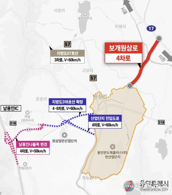 보개원삼로는 최근 개통한 세종포천고속도로의 남용인 나들목(IC)와 직접 연계되기 때문에 이번 확장이 용인 반도체클러스터 일반산단의 물류‧교통에도 긍정적인 영향을 미칠 것으로 전망하고 있다.