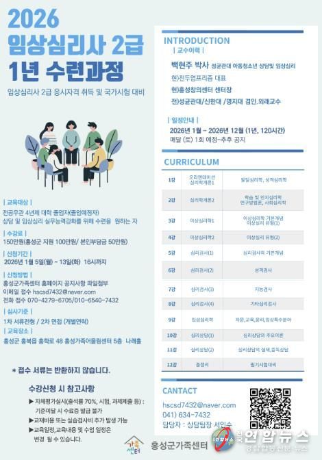 전국연합뉴스 김용태 기자 | 홍성군은 아동의 심리적 건강을 증진하기 위한 아동 심리상담 전문가 양성 과정 수련생을 모집한다.