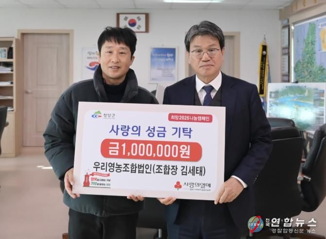전국연합뉴스 김용태 기자 | 청양군은 지난 2일 우리영농조합법인이 ‘희망2026 나눔캠페인’을 통해 성금 100만원을 기탁했다고 밝혔다.