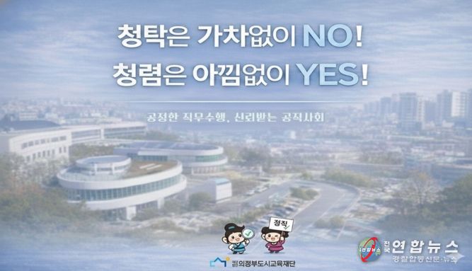 전국연합뉴스 박점규 기자 | 의정부도시교육재단은 임직원이 청렴의 가치를 자연스럽게 접할 수 있도록 ‘청렴 화면보호기’를 제작·배포하며 내부 청렴문화 확산에 나섰다고 밝혔다.