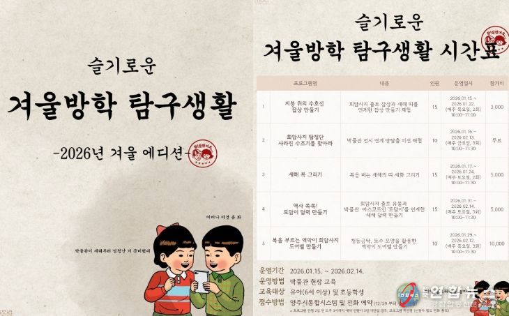전국연합뉴스 박점규 기자 | 양주시립회암사지박물관이 2026년 붉은말의 해 ‘병오년’을 맞아 겨울방학 특별프로그램 ‘겨울방학 탐구생활’을 운영한다.