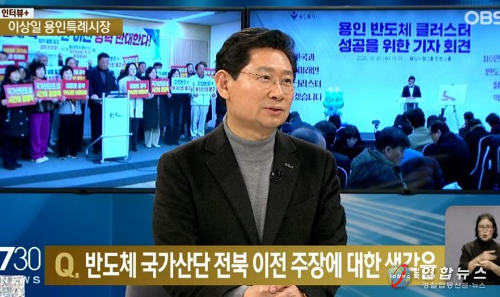 전국연합뉴스 박남호 기자 | 이상일 용인특례시장은 20일 저녁 OBS ‘뉴스 730’에 출연해 반도체 국가산단 지방이전에 대해 “새만금에는 새만금에 맞는 신규 투자를 하는 게 옳다. 용인 반도체 국가산단을 국가전략산업의 미래 경쟁력을 키우는 관점에서 봤으면 한다”고 했다.