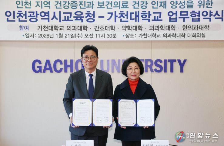 전국연합뉴스 배주현 기자 | 인천광역시교육청은 21일 가천대학교에서 ‘가천의료융합교육 및 연구협의체(G-MERCI)’와 보건·의료 분야 업무협약을 체결했다.