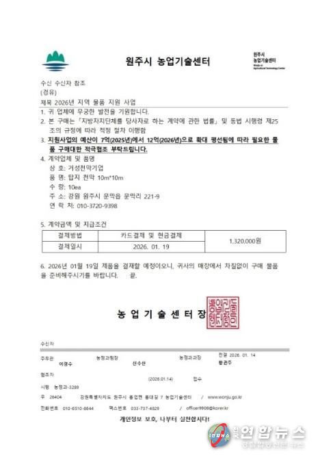 전국연합뉴스 유근택 기자 | 원주시는 최근 공무원을 사칭해 물품 구매 및 대리 납품을 요구하는 사기 시도가 지속적으로 발생함에 따라, 관련 수법을 공유하고 유사 피해 예방을 위한 유의 사항을 안내했다.