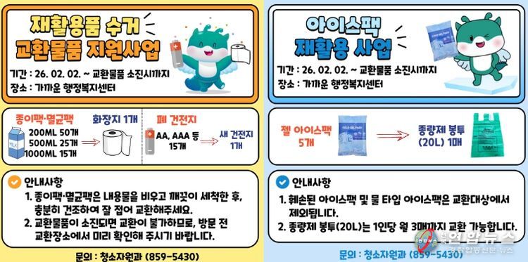 전국연합뉴스 최성용 기자 | 익산시가 재활용률 향상과 자원순환 문화 확산을 위해 '재활용품 수거 교환물품 지원사업'과 '아이스팩 재활용 사업'을 추진한다.